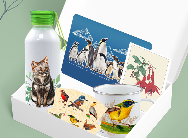 Trabajamos con ilustradores especialistas en lo que hacen: naturalistas para retratar nuestro entorno natural, creadores de lettering, diseñadores y creativos que tienen a Chile en el corazón, con un amor por el patrimonio que los hace únicos.